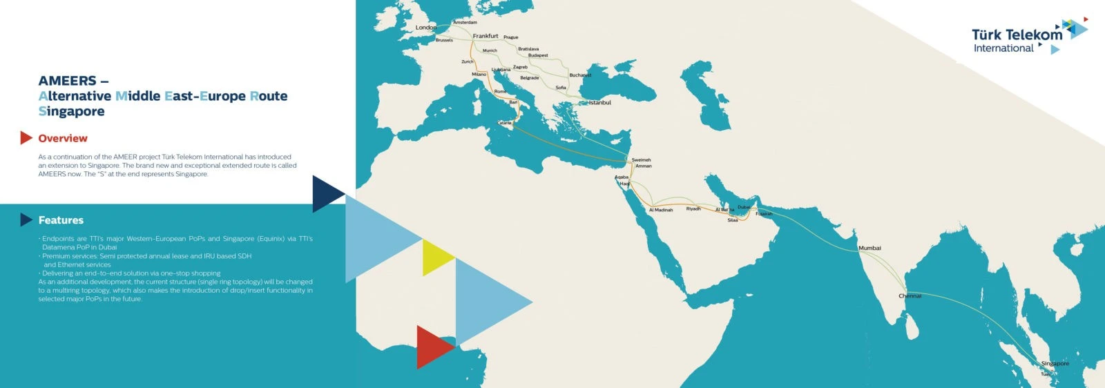 As a continuation of the AMEER project Türk Telekom International has introduced an extension to Singapore. The brand new and exceptional extended route is called AMEERS now. The “S” at the end represents Singapore.