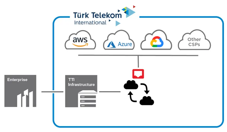 Türk Telekom International’s Cloud Connect service provides a dedicated connection between enterprise site location(s), and Cloud Service Providers (CSPs) via Türk Telekom International network. The connection is delivered via Türk Telekom International’s state of the art IP/MPLS network between the end customer and Cloud Service Providers.